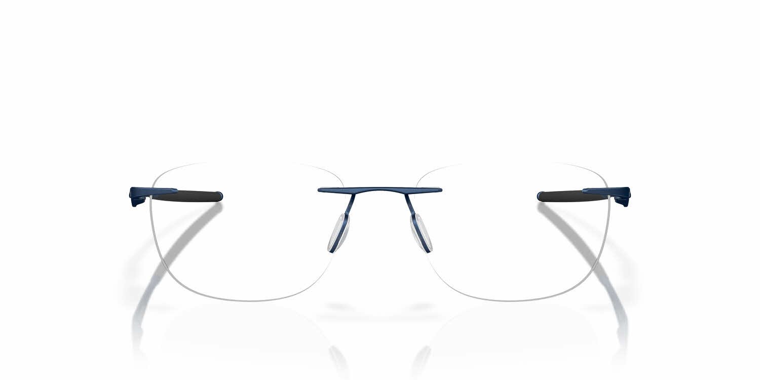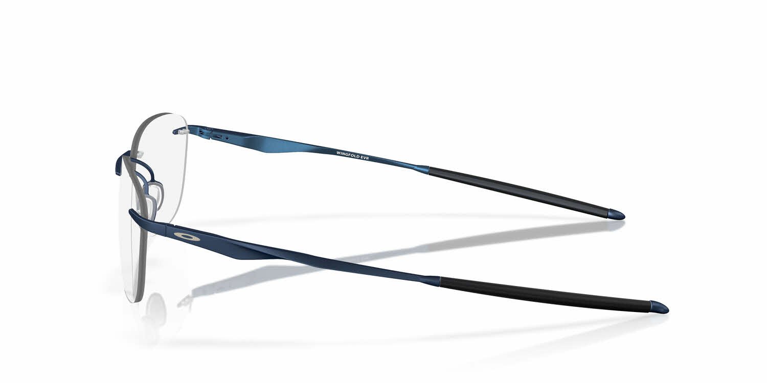 Enhance your look with the sporty, sophisticated styling of Oakley Wingfold EVR eyeglasses. These rimless frames are metal and titanium, both lightweight and durable. Metal temples feature anodized details for a stylish look while reducing glare from light sources behind you. Wide metal headpieces provide added stability behind the ears while maintaining comfort around the skull. The distinctive O at each temple adds designer appeal to these sleek yet rugged Oakley glasses.